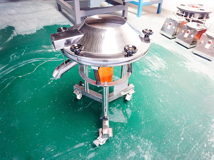 450過濾篩——直徑為450mm,由電機(jī)驅(qū)動重錘激振,篩體產(chǎn)生水平、垂直、傾斜的三次元運動,使含水物料在篩網(wǎng)上被拋起并由中央向外旋轉(zhuǎn)擴(kuò)散到出料口排出,含水物料在篩網(wǎng)上面的運動中,細(xì)小顆?;蛞后w透過篩網(wǎng),通過選擇安裝相應(yīng)的篩網(wǎng)和篩網(wǎng)層數(shù)使物料完成篩選分級或過濾,分選出的物料由各自的出料口分別自動排出。是一臺單層篩分和過濾使用的振動篩,被各個廠家和用戶叫做液體專用振動篩,因為機(jī)身小的原因,所以它的處理量不多,適用于小產(chǎn)能要求。