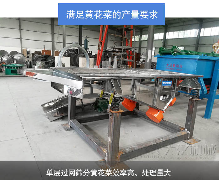 以上就是小編為您介紹的黃花菜除雜過濾使用的單層不銹鋼直線振動篩,如果您還有不懂的篩分問題,歡迎致電大漢客服部,我們將為您針對您的問題為您帶來專業(yè)、準(zhǔn)確的回答。