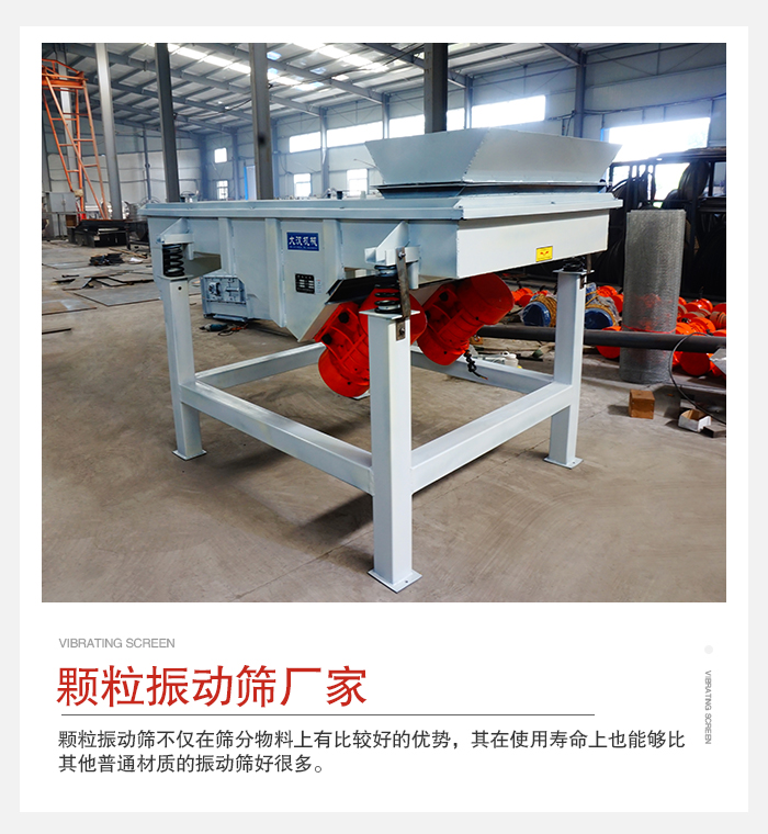 1)從產品的產量可以看出,同一型號的顆粒振動篩其產量的大小,是由直線振動篩的透網率,振動頻率等因素決定的。透網率就是其篩網網孔的分布是否均勻,網孔的大小是否標準等。