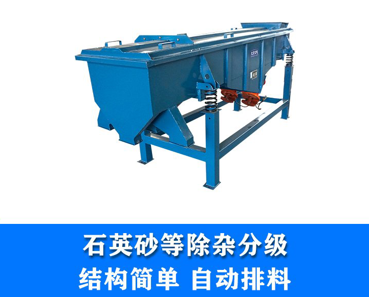 石英砂直線篩主要用于石英砂的初篩和分級,粒度范圍為1—0.5mm、0.5—0.1mm、0.1—0.01mm、0.01—0.005mm。