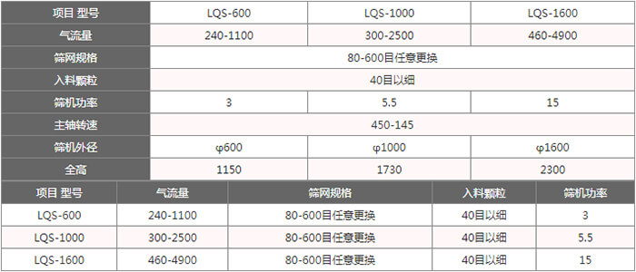 該機(jī)適合80-530目有網(wǎng)各種粉狀物料篩選分級,其篩分效率高、產(chǎn)量大、自動(dòng)進(jìn)料排料、連續(xù)作業(yè)、無污染,使以往用各種振動(dòng)篩難以進(jìn)行高細(xì)度精密篩分作業(yè)成為易事。經(jīng)過對120-180目輕鈣、300目重鈣、400目活性鈣、300目山楂粉、320-500目鋅粉、500目氧化鐵黑、氧化鐵紅、120-160目中藥粉、180-270目石英粉等物料的篩分使用,測得每平方米篩網(wǎng)面積每小時(shí)產(chǎn)量均在一噸左右,同時(shí)測得篩分效率在95%以上,空氣含塵量低于10mg/m3。