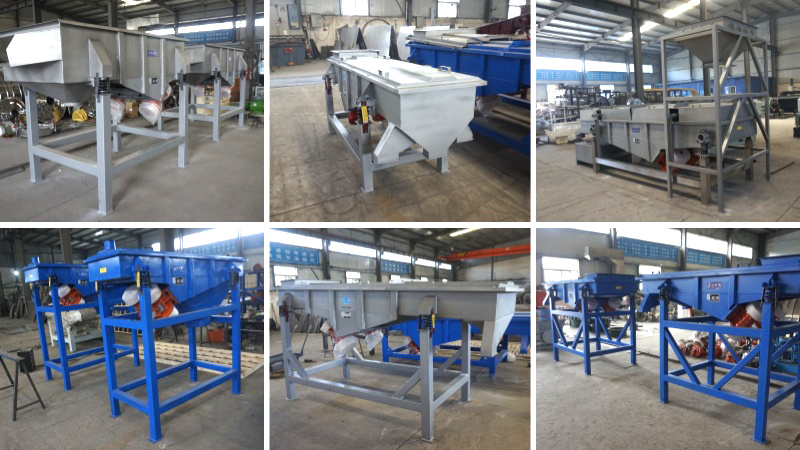 直線篩依靠?jī)蓚€(gè)相同頻率的反向電機(jī)使物料在篩面上直線向前跳躍,小于篩孔孔徑的物料通過(guò)篩網(wǎng)落入下層,大于篩孔尺寸的物料留在篩面上從該層出料口排出,從而達(dá)到對(duì)物料進(jìn)行篩分和分級(jí)的目的。